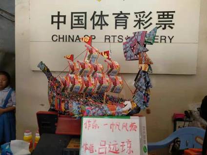 邓先生介绍:“参赛时刚好是暑假,于是把平时收集起来废票让放暑假的儿子动手制作个手工艺品,一来锻炼一下小孩的动手能力,二来作品可以去参加比赛,还可以放在店里做展示。”经过商量后,邓先生两个小孩决定制作妈妈最喜欢的水果“菠萝”。当邓先生知道小孩的作品荣获大赛优秀奖后非常开心,他以前都是把废票销毁,现在利用这些废票还能获奖,之后他店里的各种顶呱刮废票个性展示越来越多了。