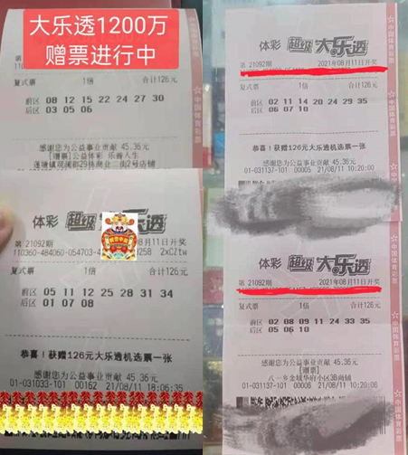 感恩回馈为公益事业奉献点滴爱心的江西购彩者,继排列3“1000万大赠送”活动后,体彩大乐透“1200万买就送”活动也火爆开始了。本次活动自8月9日晚开售的体彩大乐透第21092期开始,活动期间凡购买指定复式(6+3、7+3、8+3、9+3)大乐透彩票,即可随机获得相应金额赠票,赠票为机选票,至1200万元赠票送完为止。