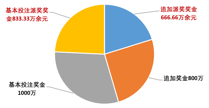 本期,二等奖开出70注,单注奖金为21.88万余元;其中33注采用追加投注,单注追加奖金17.50万余元,根据10亿元大派奖规则,本期共有31注二等奖符合参与条件还可获得派奖奖金,每注多得二等奖派奖奖金16.12万余元,分享派奖奖金后,二等奖单注总奖金为55.52万余元。