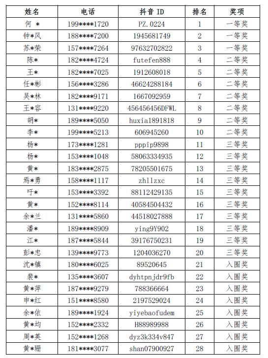 抖音达人看过来,江西体彩抖音挑战赛获奖名单来啦!
