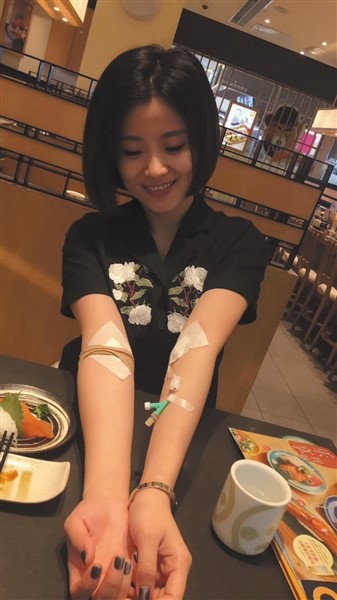 微博作者是一名来自杭州的28岁女生叫许艾菲,她所分享的是自己捐献造血干细胞的经历:“四天八针,两个手臂感觉要成马蜂窝……”