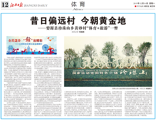 2019年12月16日,江西日报在12版,以“昔日偏远村 今朝黄金地”为题,报道了江西婺源县珍珠山乡黄砂村借助“体育+旅游”的发展模式受益匪浅。而黄砂村中的江西省第一座可满足气排球、羽毛球、乒乓球等多项比赛需求的村级全民健身馆的建成得到了体彩公益金的支持。【点链接查看全文】