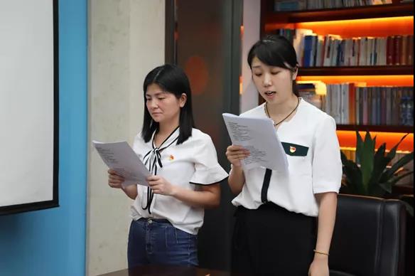 两名2019年度优秀共产党员和两名新入党党员分别作“七一”感言,交流心得体会。两个党支部当日也分别召开支部党员大会,以“心声向党”为主题,党员同志们纷纷向党的生日送上衷心地祝福。大家认为“党员”不是称号或身份,而是责任与嘱托;不是写在纸上、留在档案里的政治面貌,而是坚定初心、抓铁有痕的奋斗征程;认为做合格的共产党员,就要大力弘扬行胜于言的实干精神,保持勇于担当、敢闯敢试的精神状态,做不畏困难的搏击者;认为作为新时代的党员干部,要以主人翁的姿态解放思想、创新思维、开拓进取,认真履行好自己的岗位职责。