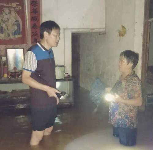 2020年7月那个炙热的夏天,因强降雨导致当地内涝严重,庄乾锋会同镇村党员干部迅速组织开展防汛抗洪工作。“大姐,我们现在得赶紧离开这里啦,水都没过膝盖了”,庄乾锋打着手电筒,一户一户不厌其烦地劝导村民转移,到晚上10点半左右,共安全转移60余名村民。随后,他又一户户的敲门、一户户的查看、一户户的做工作、一户户的搬运物资,组织群众开展自救互救,把损失降到最低。