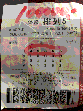 据网点业主介绍,中奖彩友是该网点的常客,是位老彩友。这位彩友一直热钟于购买体彩,发现“排列5”游戏简单却不失趣味性,觉得挺有意思,便开始买“排列5”。 毕竟是购彩多年的老彩友,这位彩友每次购买的号码都是他结合自己的经验精心测算出来的,该张中奖彩票是一张8元的单式,体彩3612012050网点业主惋惜地说,这位彩友投注的时本想投注2倍,刚好身上没带够钱,最后只投注了1倍, 如果坚持一下投2倍的话,就是一个20万呢!但是能中个10万,也已经是天大的喜事了,我们应该恭喜他。