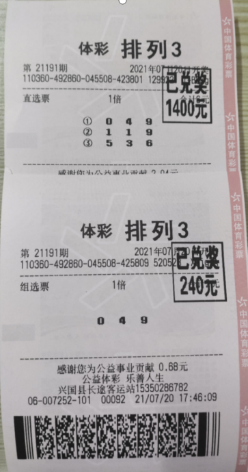 与刘先生不同的是,赣州兴国县的购彩者陈先生(化姓)则是一位购彩长达十多年的“资深”购彩者。对于这次排列3促销活动,陈先生表现得非常积极。活动首期,他便选择了几种不同的投注方式,有直选单式、组选复式,组选2码全包等等。由于陈先生多年坚持理性购彩,所以即使有营销活动,每期也不会投入太多购彩金额,此次陈先生每种投注方式都只选择了1倍。开奖后,陈先生发现自己购买的所有排列3全部中奖!陈先生感慨,本次活动所有投注方式都参与,直选奖金高,组选更容易,一起买才更好!