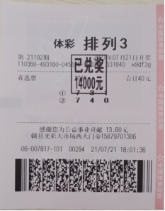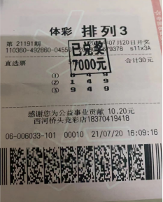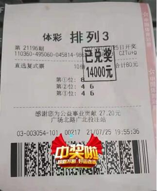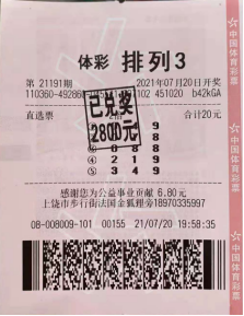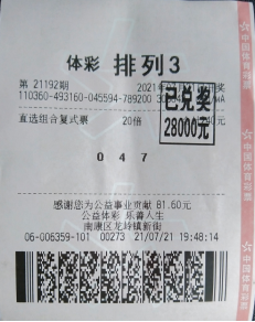 7月20日,排列3活动首期开奖当晚,上饶3608008719门店便“首战告捷”,购彩者小王在该门店购买了三张排列3直选复式票,合计中得奖金8400元。据了解,小王已经购买了三年体彩排列3,而且很有“诚意”,非常“执着”,三年间几乎从未间断,即使工作再忙也会坚持购买,尤其钟爱直选复式投注,三年的购彩经历使他积累了许多投注经验,这次中得的排列3号码也是他精挑细选后选出的。