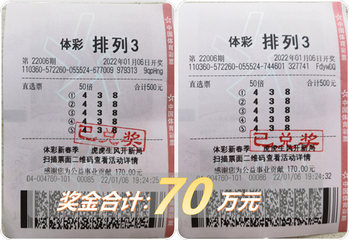 中奖者是来自九江的高先生(化姓),他在1月6日采用单式直选方式投注号码“438”,并且倍投了500倍。该票中得原奖金52万元,再加上赠票奖18万元,合计高达70万元。在活动的加持下,奖金整整提高了34%。