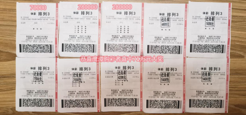 71万元!鹰潭购彩者喜中体彩排列3超值大奖