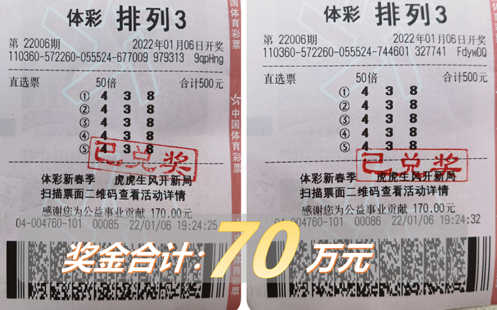 截至2022年1月5日,“排列3”1000万促销活动已经进行了7期,赠票多多,奖金多多。[详情]