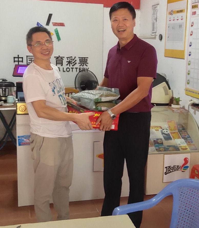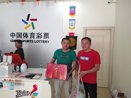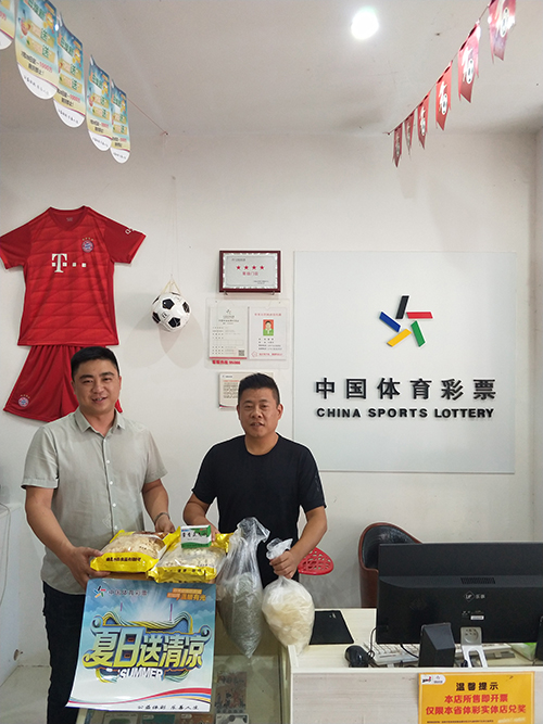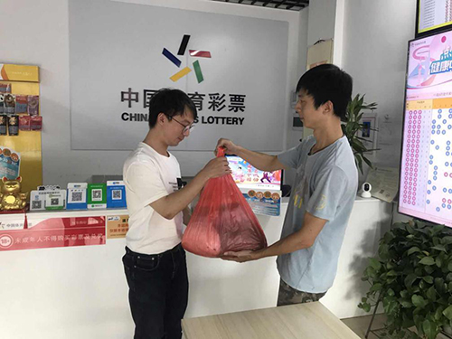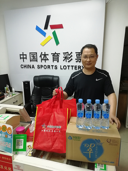 浔阳区战备路36040020015体彩门店销售员柳哥,从工作人员手中接过慰问品说道:“感谢中心领导对我们的关心,这么酷热的天气没有忘记我们一线销售员。我一定会像军人一样恪守在公益事业一线,为购彩者们提供最热情、最周到的服务!”。
